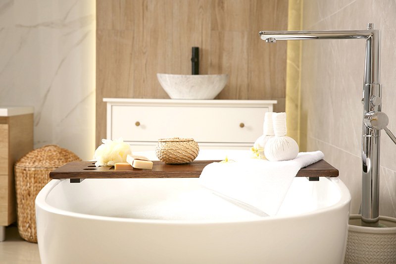 Pampas grass and other dried grasses have shed their outdated 70s suburban image to become a favorite among interior stylists. Their full, feathery texture adds a whimsical yet natural warmth to your bathroom. Display them in a large pot or amber glass vase, and elevate the effect by spritzing your favorite room fragrance. This offers a modern, sophisticated alternative to traditional potpourri. For a more architectural touch, palm spears provide a striking, low-maintenance botanical option that fits perfectly with Desert core’s natural, effortless luxury.